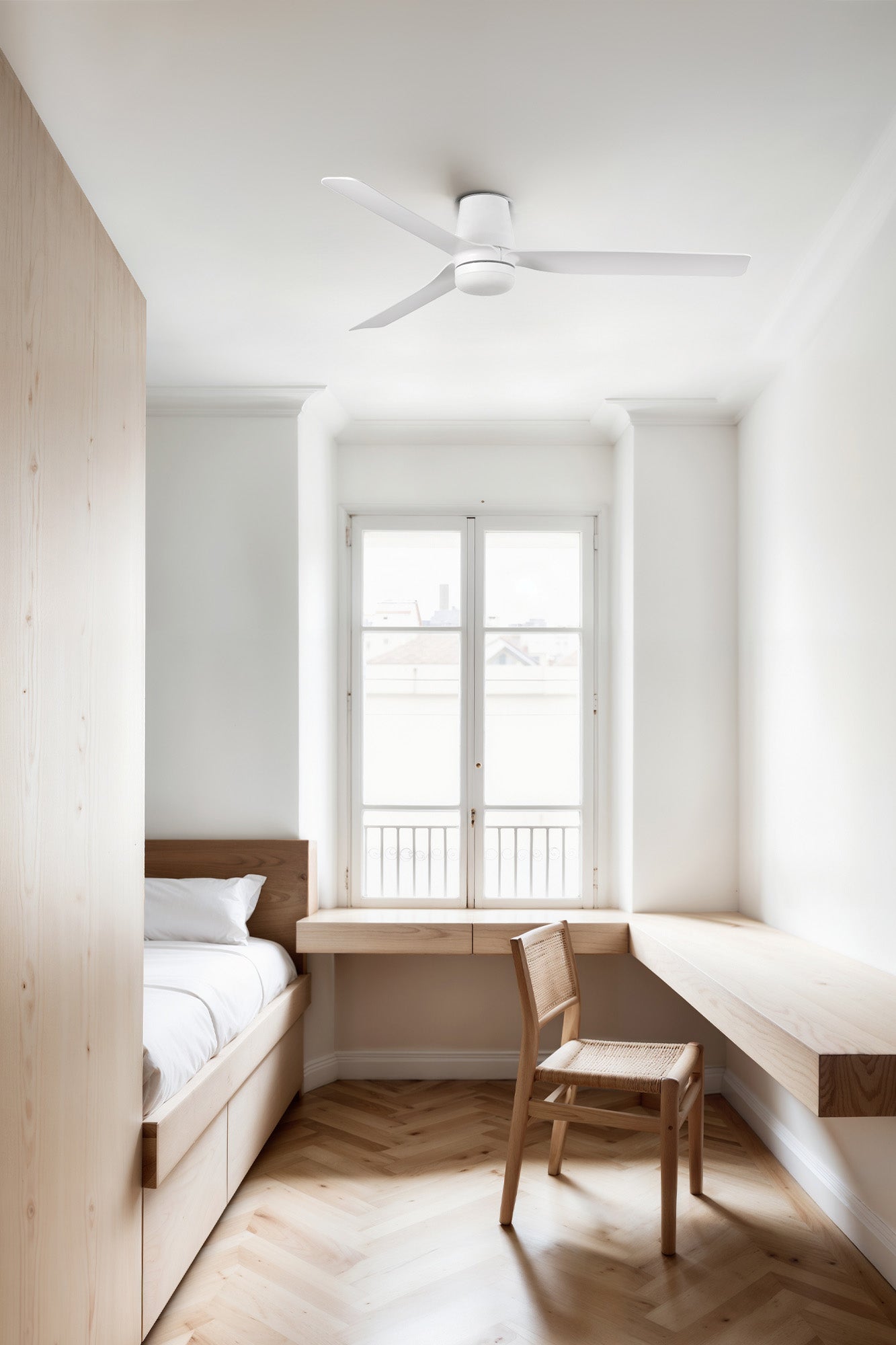 FARO Barcelona Mini Punt Tub S ceiling fan steel matt white LED H 23.0cm