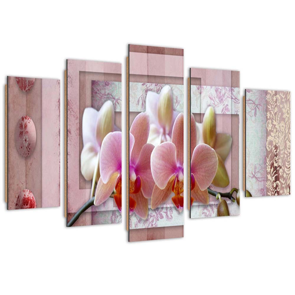 Five piece picture deco panel, Pink orchid