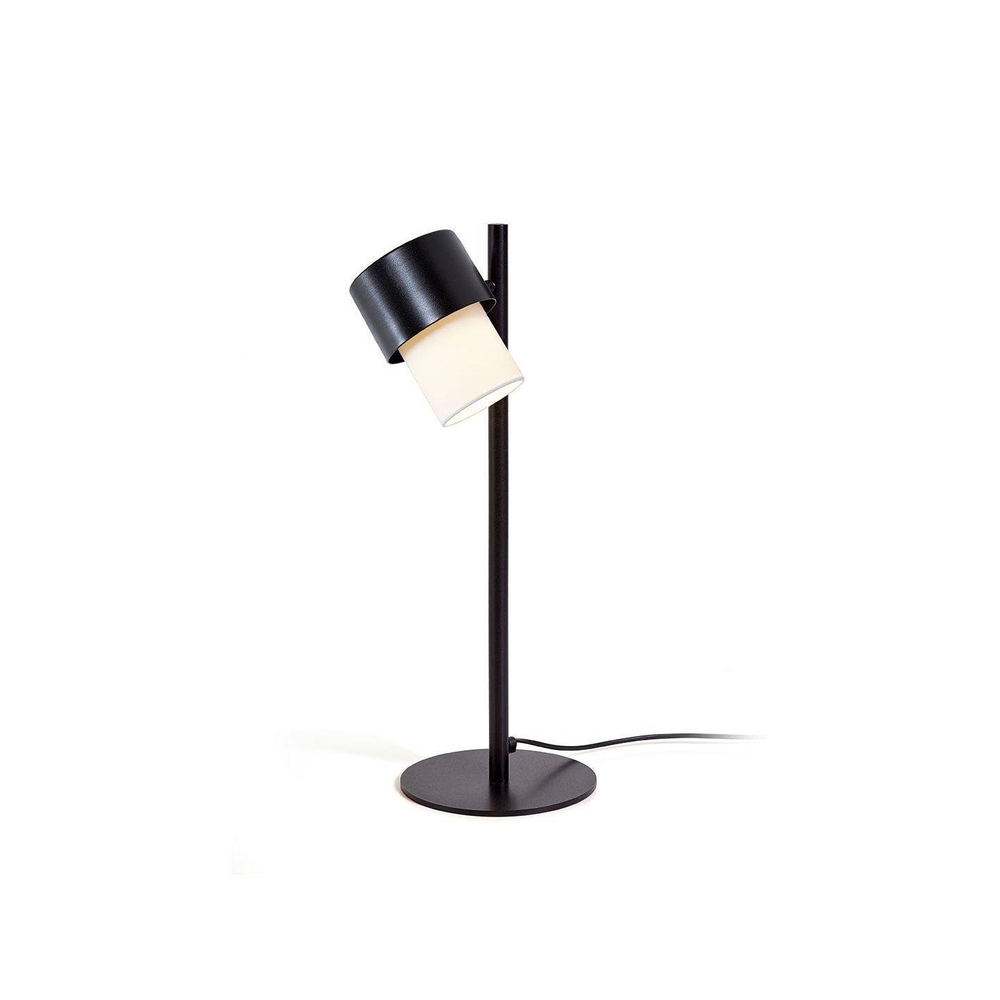 Inspired by puzzles and assembly kits, the Kan collection aims to create light effects between its different components. The shades light up simultaneously and soften the light source to create a warm and cozy atmosphere. The balance between metal and textile reveals a play of textures and color nuances. GU10 LED 8W bulb not included. The diameter of the lampshade is 8cm. The diameter of the base is 20cm. Black RAL 9005 structure and white cotton lampshade.